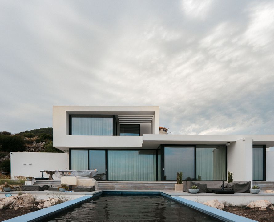 Μινιμαλισμός με εκκεντρικούς όγκους. Εντυπωσιακή κάθετη πισίνα ως σημείο αναφοράς που ενσωματώνεται στην αρχιτεκτονική. Architect Designer: Olivier Dwek