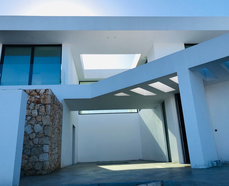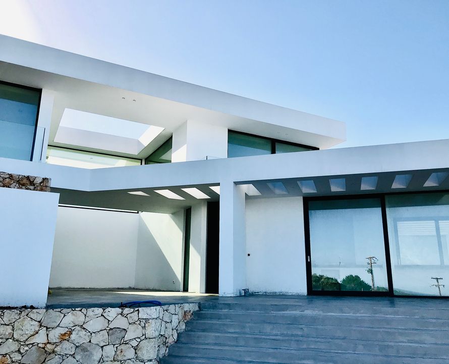 Μινιμαλισμός με γεωμετρία τύπου Tetris, θέα προς Κεφαλλονιά, πισίνα ως προέκταση της μορφής. Αρχιτεκτονική αρμονία και ηρεμία. Architect Designer: Jean-Benoit Courtois. Σπύρος Χειμαριός: Έκδοση άδειας και επίβλεψη έργου.