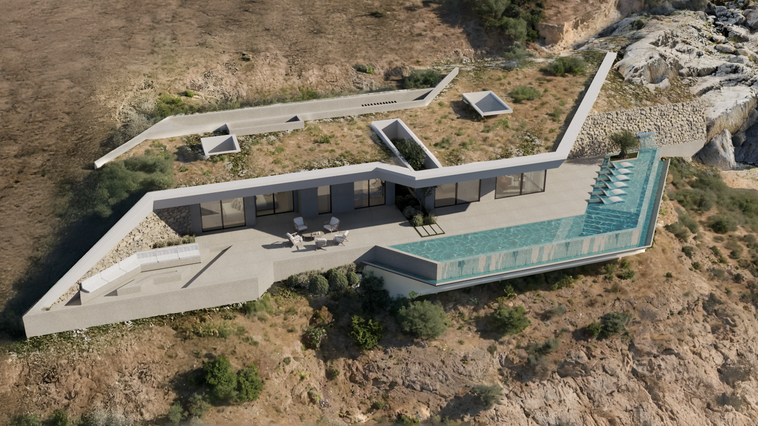 Αυτή η μοναδική βίλα συνδυάζει καινοτόμο σχεδιασμό με λειτουργικότητα, δημιουργώντας έναν χώρο που αναδεικνύει την αρμονία με το φυσικό τοπίο. Υποσκαφή με πισίνα που ενσωματώνεται στον σχεδιασμό, προσφέροντας ηρεμία και πολυτέλεια.